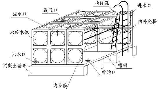 不銹鋼水箱安裝示意圖