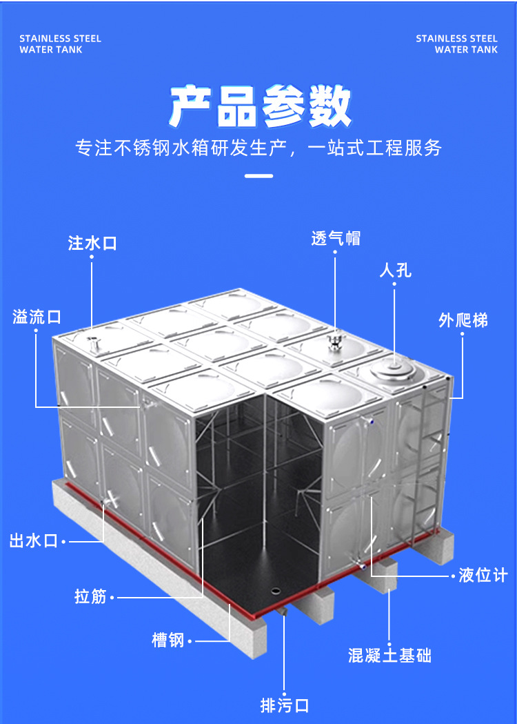 不銹鋼水箱驗收標(biāo)準(zhǔn):不銹鋼水箱滿水實驗,24小時無滲漏現(xiàn)象;管道連接處、閥門及相關(guān)附件有無滲漏水現(xiàn)象