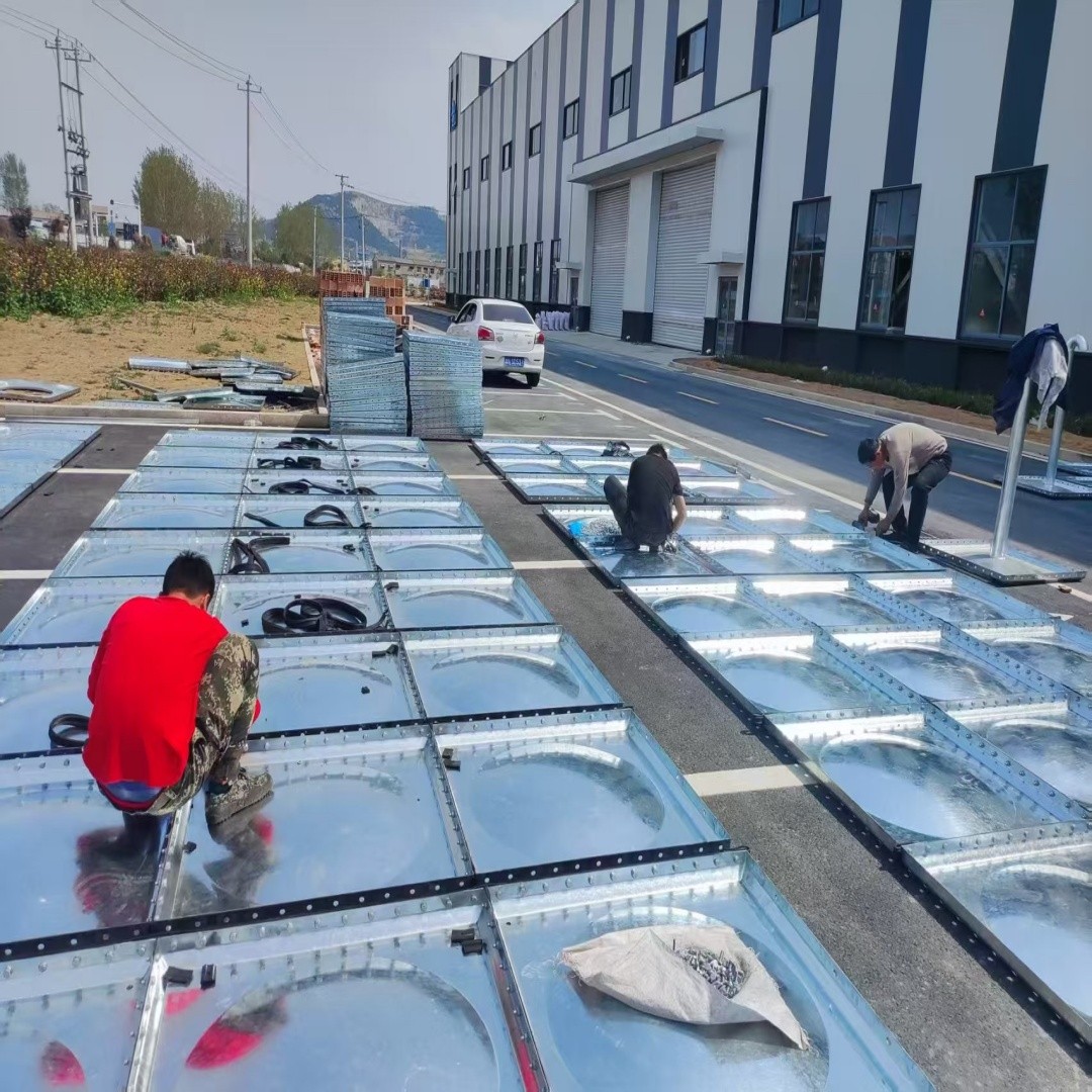 1、焊接底架——根據(jù)水箱板塊尺寸確定槽鋼的間距,首先將槽鋼固定,用水平尺 校對,其平整然后再整體緊固。